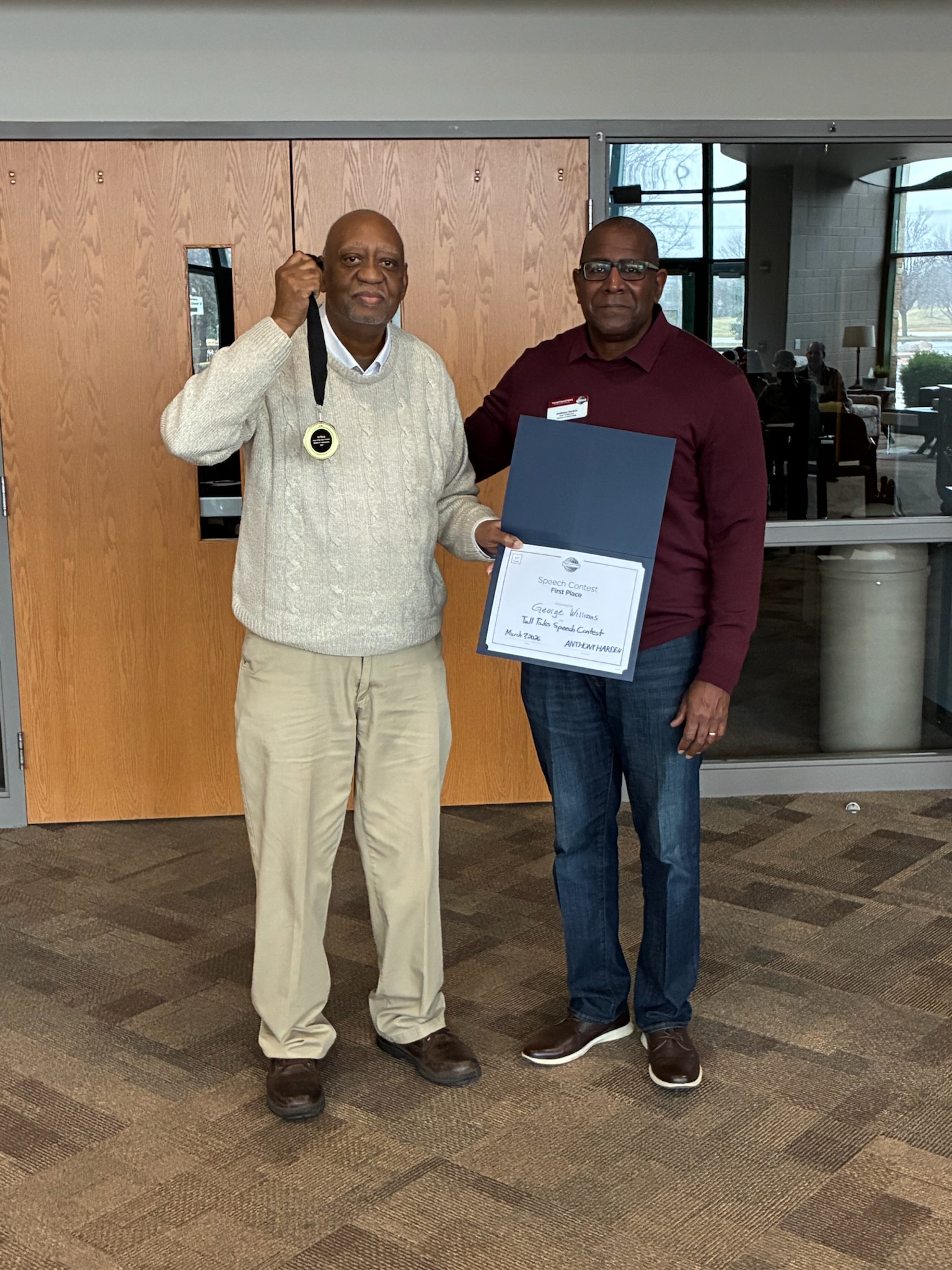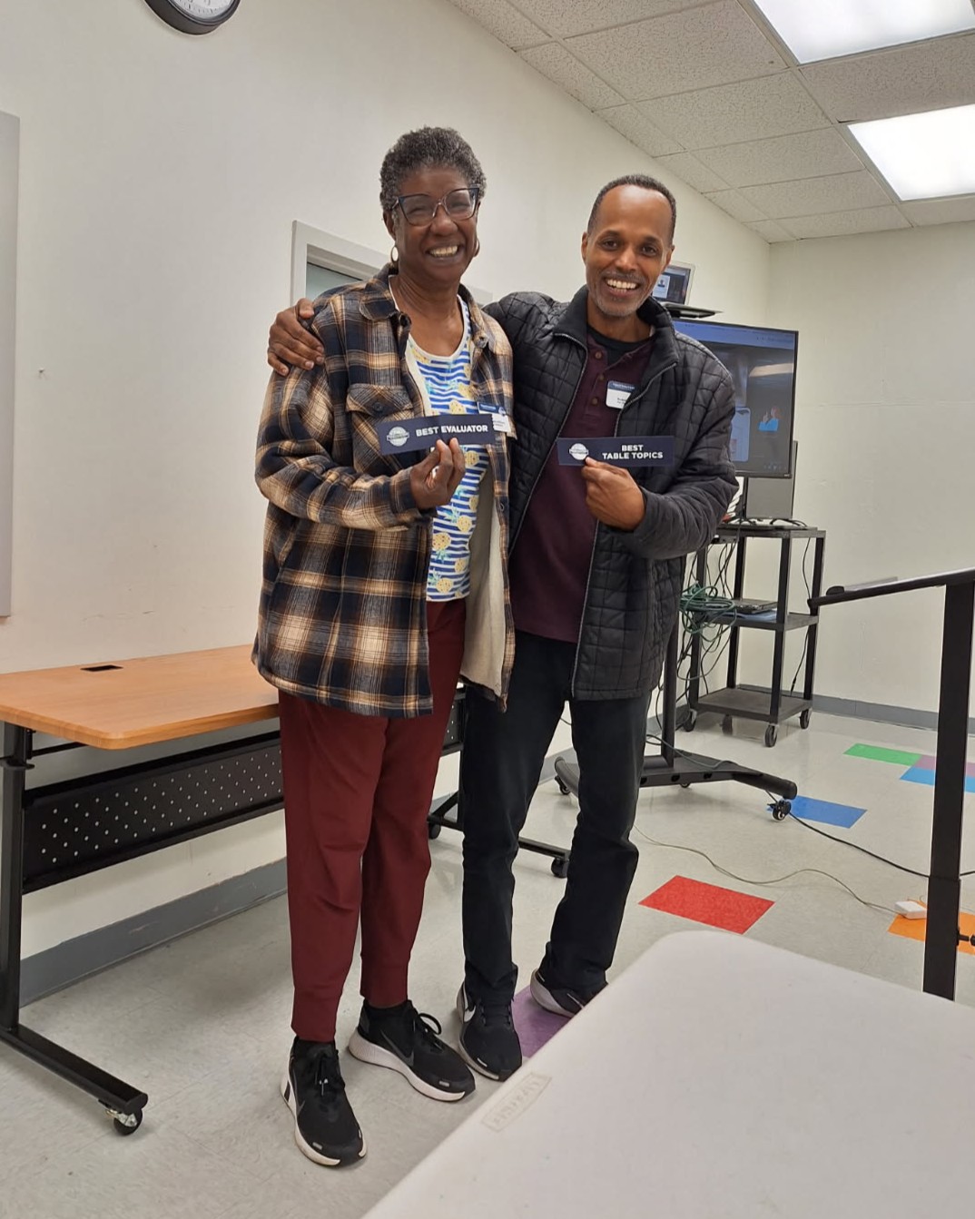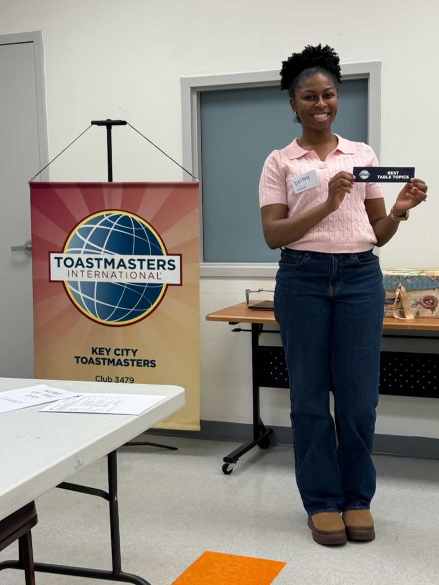 • Congratulations to Tierra, this meeting’s Traveling Trophy winner and the epitome of a multitasking member! Tierra did an outstanding job on her very first time serving as Toastmaster of the Day AND led a fantastic round of Table Topics on the theme of our word of the day: epitome!